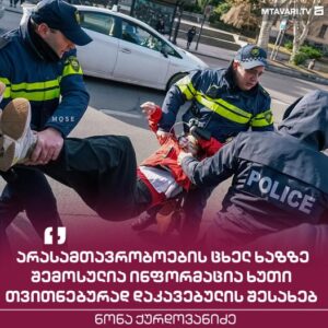 “რუსთაველის გამზირზე პოლიცია მშვიდობიან დემონსტრანტებს აკავებს.