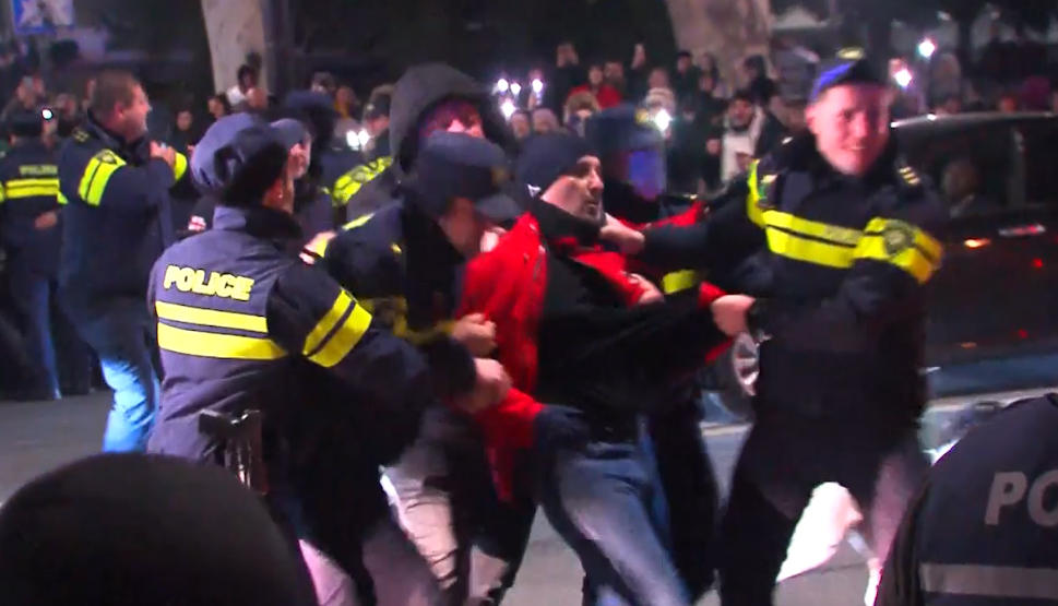 რუსთაველის გამზირზე „გახარია საქართველოსთვის“ გუნდის წევრი ლევან გოგიჩაიშვილი პოლიციამ დააკავა.