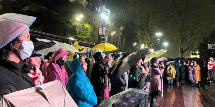 დედაქალაქის მთავარი გამზირი კვლავ გადაკეტილია – მიუხედავად უამინდობისა, პროტესტის 133-ე დღესაც მოქალაქეები ქუჩაში უცვლელი მოთხოვნებით დგანან და ივანიშვილის რეჟიმს საქართველოს რუსეთისთვის მიბარებაზე უარს ეუბნებიან.