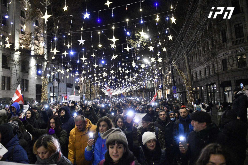 ინფორმაციისთვის, მოქალაქეები „ქართული ოცნების“ 28 ნოემბრის გადაწყვეტილებას აპროტესტებენ, რომლის თანახმად, საქართველო 2028 წლის ბოლომდე ევროკავშირთან მოლაპარაკებების გახსნის საკითხს დღის წესრიგში არ დააყენებს. მათი მოთხოვნა უცვლელია – დაინიშნოს ხელახალი არჩევნები და გათავისუფლდნენ პროტესტის დროს დაკავებული მოქალაქეები.