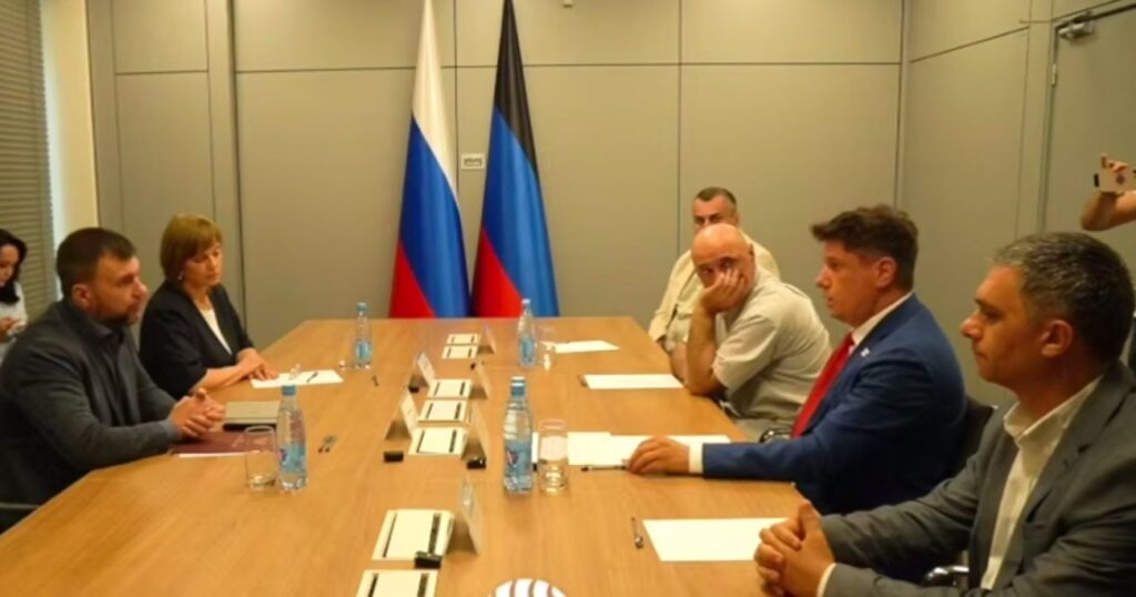 რუსული სამთავრობო-პროპაგანდისტული მედია РИА Новости ირწმუნება, რომ ქართული ოცნების წარმომადგენლები ოკუპირებულ დონეცკში ე.წ. დონეცკის სახალხო რესპუბლიკის ხელმძღვანელს, დენის პუშილინს შეხვდნენ.