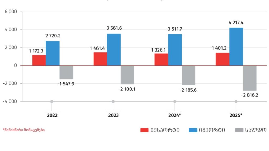 საქართველოს უარყოფითმა სავაჭრო ბალანსმა საგარეო სავაჭრო ბრუნვის 50%-ზე მეტი შეადგინა.