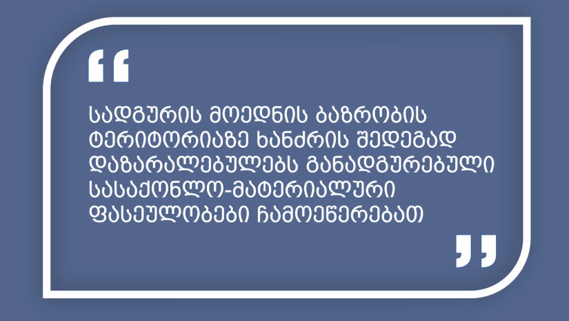 „ამასთან, შემოსავლების სამსახური განმარტავს, რომ განადგურებული სასაქონლო-მატერიალური ფასეულობების ჩამოწერით, დაზარალებულ პირებს განადგურებულ სასაქონლო-მატერიალურ ფასეულობებთან დაკავშირებით საგადასახადო ვალდებულებები არ წარმოეშვებათ“ – ნათქვამია განცხადებაში.
