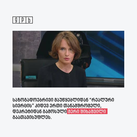 საზოგადოებრივ მაუწყებელში (პირველი არხი) რეპრესიები გრძელდება. ამჯერად “რეალური სივრცის” კიდევ ერთი თანამშრომელი, დეკრეტიდან გამოსული მერი შიხაშვილი გაათავისუფლეს.