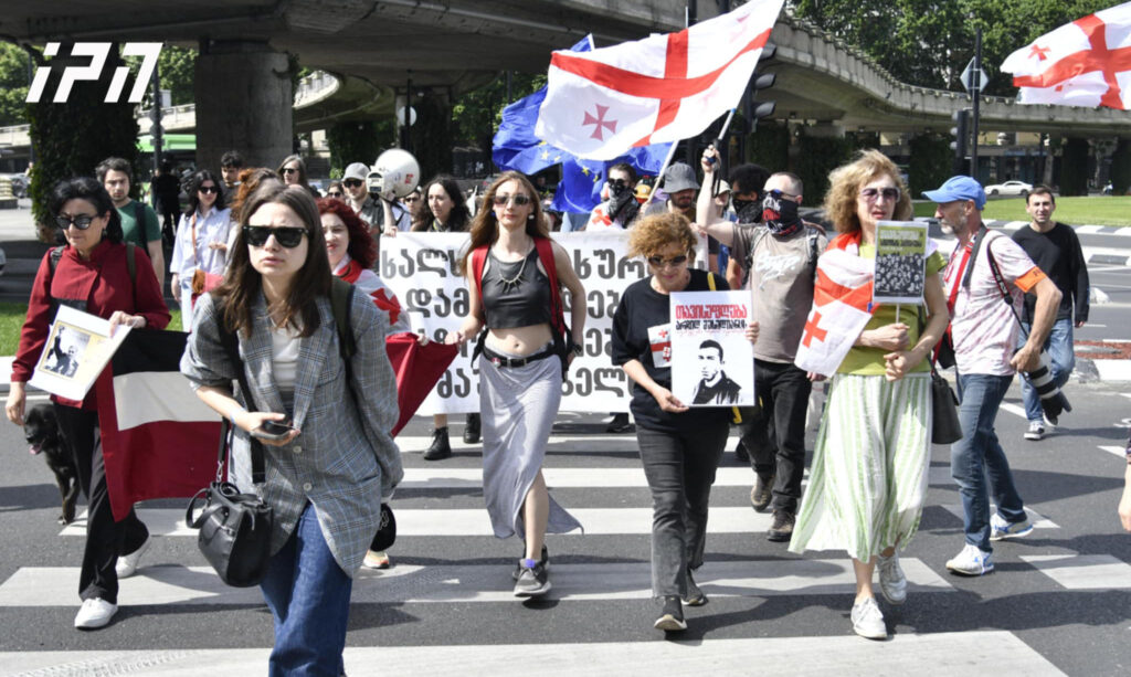 აქციის მონაწილეები საქართველოსა და ევროკავშირის დროშებით არიან და სკანდირებენ: „ცეცხლი ოლიგარქიას“, „არ იქნება სამართალი? არ იქნება მშვიდობა“, „უსამართლო სასამართლო, ხალხის ძალის გეშინოდეს“, „თავისუფლება რეჟიმის ტყვეებს“.