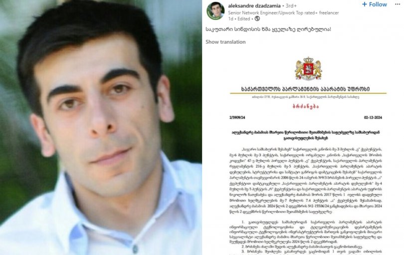 ამის შესახებ ის LinkedIn-ზე წერს და აქვეყნებს სამსახურიდან წასვლის შესახებ ბრძანებას, წარწერით: “საკუთარი სინდისის ხმა ყველაზე ღირებულია!”.