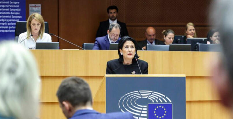 კობახიძე უფლებისა და მანდატის გარეშე აჩერებს საქართველოს ევროპულ მომავალს, ამის შესახებ საქართველოს პრეზიდენტმა სალომე ზურაბიშვილმა ევროპარლამენტში გამოსვლისას განაცხადა.