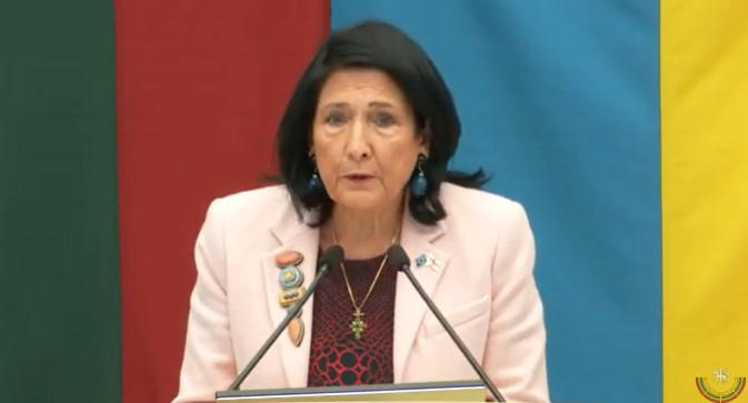 „საქართველოში კრიზისი მწვავდება. არჩევნების გაყალბების გარდა, პოლიტიკური კრიზისის გარდა, სადაც ოპოზიცია ეწინააღმდეგება არჩევნების შედეგებს, როდესაც მმართველი პარტია ცდილობს ძალაუფლების კონსოლიდაციას, რა ფასადაც არ უნდა დაუჯდეს, ჩვენ წინააღმდეგობას ვუწევთ განსხვავებულ გამოწვევას, რომლის კვალიფიცირება შეიძლება მხოლოდ როგორც ეგზისტენციალური გამოწვევა. მმართველმა პარტიამ, რომელიც ხელისუფლებაში მოვიდა თავდაპირველად ქვეყნის მოსახლეობის აბსოლუტური უმრავლესობის მხარდაჭერით, რადგან ის მოვიდა ხელისუფლებაში პრო-ევროპული პროგრამით, დემოკრატიული რეფორმების პროგრამით, გადაწყვიტა გასული წლის 28 ნოემბერს, ზურგი ექცია საკუთარი დაპირებებისთვის, რომელიც გაწერილია კონსტიტუციის 78-ე მუხლში, ზურგი ექცია ერის გამოხატული ნებისთვის საქართველო ევროპულ ოჯახს შეუერთდეს და ქართველი ხალხის ყველა მოლოდინისა და მისწრაფების წინააღმდეგ იწყებს საქართველოს დაბრუნება რუსეთის ბატონობისკენ და ქვეყნის მართვის რუსული მოდელისკენ. რუსული კოშმარი, რომელიც ისტორიის ნაწილი გვეგონა ჩვენი დამოუკიდებლობის შემდეგ, ბრუნდება, რომ გვდევნოს 21-ე საუკუნეში“, – აღნიშნა საქართველოს მეხუთე პრეზიდენტმა.