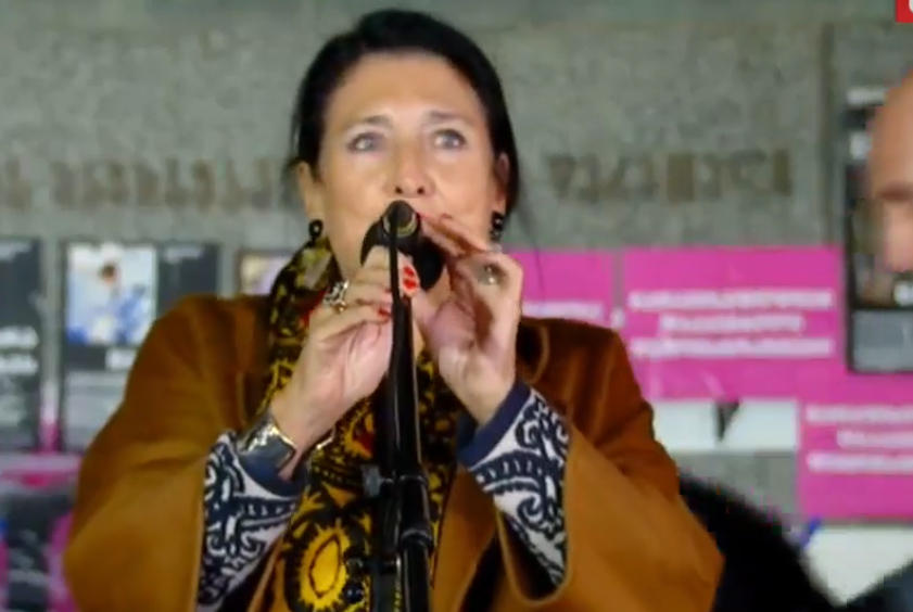 მე ვრჩები ერთგული იმ ქვეყნის კონსტიტუციის, რომლის წინაშე ფიცი 6 წლის წინ დავდე. ეს კონსტიტუცია, რომელიც გათელეს ფეხქვეშ, მაგრამ დგას, როგორც დგას საქართველო, – ასე მიმართა საქართველოს პრეზიდენტმა, სალომე ზურაბიშვილმა რუსთაველის გამზირზე შეკრებილებს.