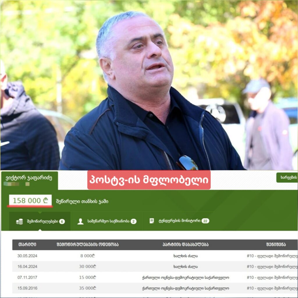 ვიქტორ ჯაფარიძემ და მისმა მეუღლემ 263 000 ლარი ოცნებას შესწირეს. (იხ. კომენტარი)