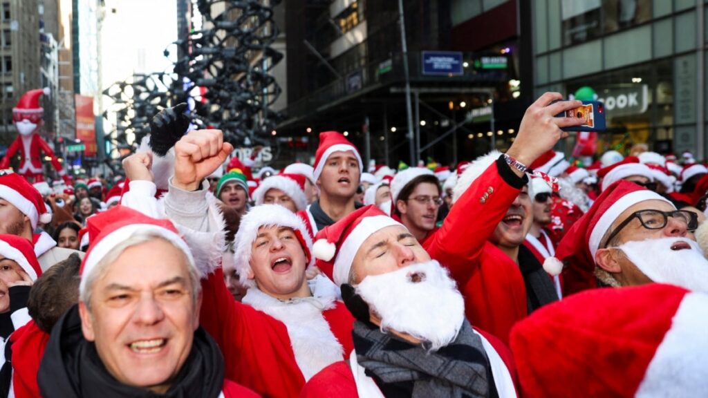 ათასობით სანტა კლაუსის კოსტიუმში გამოწყობილი მხიარული ადამიანით აივსო 14 დეკემბერს ნიუ-იორკის ქუჩები, ტროტუარები, კაფეები და ბარ-რესტორნები. “სანტაკონის” ყოველწლიური აღლუმი არაკომერციული, აპოლიტიკური მსვლელობაა, რომლის მოგება მთლიანად ქველმოქმედებას ხმარდება, ამბობენ მარშის ორგანიზატორები.