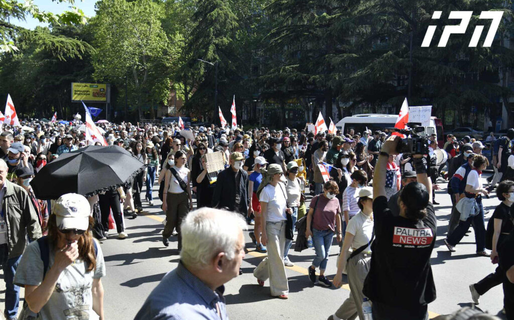 საპროტესტო მსვლელობის მონაწილეები აღმაშენებლის ხეივანზე იმყოფებიან