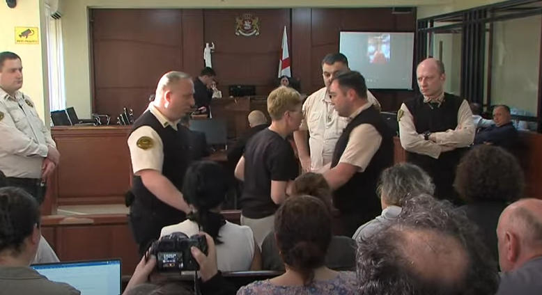 სასამართლომ იხელმძღვანელა საქართველოს სისხლის სამართლის კოდექსის 45-ე მუხლით და დაადგინა სხდომაზე დამსწრე მოქალაქე ნესტან ცეცხლაძე სასამართლო სხდომაზე წესრიგის დარღვევის, სხდომის თავმჯდომარის მოწოდების დაუმორჩილებლობის გამო, გაძევებული იქნას სასამართლოს დარბაზიდან”, – მიმართა მოსამართლემ ნესტან ცეცხლაძეს.