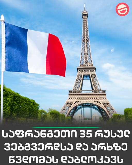 საფრანგეთი 35 რუსულ ვებგვერდსა და არხზე წვდომას დაბლოკავს | ინფორმაციას ფრანგული მედია Le Figaro ავრცელებს და წერს, რომ საფრანგეთის აუდიოვიზუალური და ციფრული კომუნიკაციების მარეგულირებელმა კომპანიამ (ARCOM) მიიღო გადაწყვეტილება, ევროკავშირის სანქციების შესაბამისად, 35 რუსულ მედია ვებგვერდზე, ტელევიზიასა და რადიოსადგურზე წვდომის დაბლოკვის შესახებ სტრიმინგ პლატფორმების მეშვეობით. ფრანგული მედიის ცნობით, სანქცირებულ ვებგვერდებს შორისაა „სპუტნიკ ნიუსი“ და „ნიუს-ფრონტი“. ARCOM-მა ასევე სთხოვა საძიებო სისტემებს, დაბლოკონ ოთხი სტრიმინგ პლატფორმის გვერდები, რომლებიც უზრუნველყოფენ წვდომას სანქცირებული რუსული ტელევიზიისა და რადიოს სერვისებზე. მანამდე, 2022 წელს რუსეთის მიერ უკრაინაში სრულმასშტაბიანი შეჭრის შემდეგ, ფრანგულმა თანამგზავრულმა ოპერატორმა Eutelsat-მა შეწყვიტა რუსული არხების NTV-Mir-ის, Rossiya 1-ისა და Channel One-ის ტრანსლირება. 2022 წლის მარტში ARCOM-მა ასევე შეწყვიტა რუსული მედიასაშუალების RT-ის ფრანგულენოვანი ვერსიის, RT France-ის ტრანსლირება.