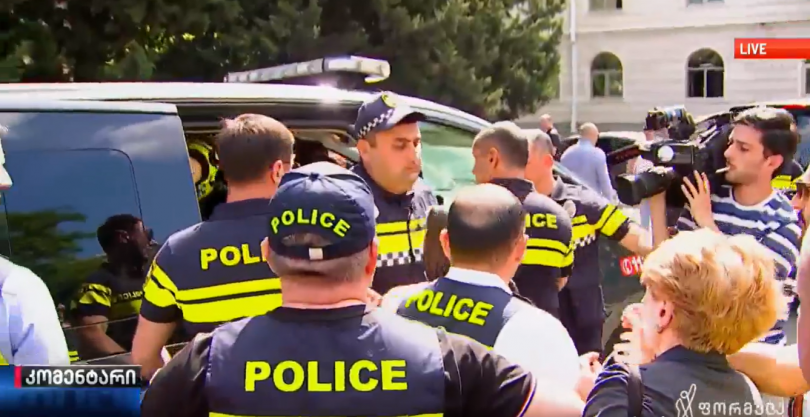 თბილისის საქალაქო სასამართლოსთან ერთი პირი დააკავეს. პოლიციის წარმომადგენელმა ფორმულას ჟურნალისტს უთხრა, რომ კაცი “იგინებოდა და ამიტომ დააკავეს”.