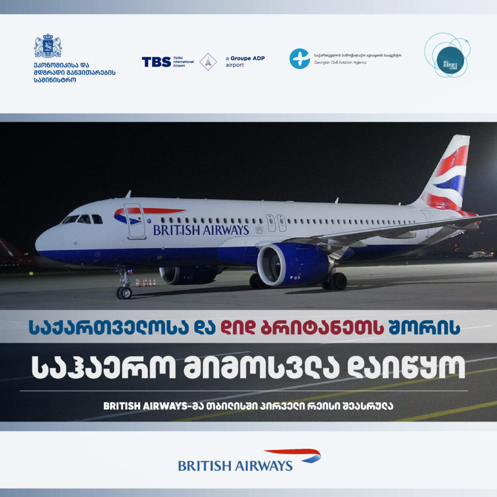 „ავიაკომპანია British Airways ლონდონი-თბილისი-ლონდონის მიმართულებით პირდაპირ რეგულარულ რეისებს კვირაში 4 სიხშირით შეასრულებს. პირდაპირი მიმოსვლა მნიშვნელოვნად ამცირებს ფრენის დროს საქართველოდან ბრიტანეთამდე და პირიქით.