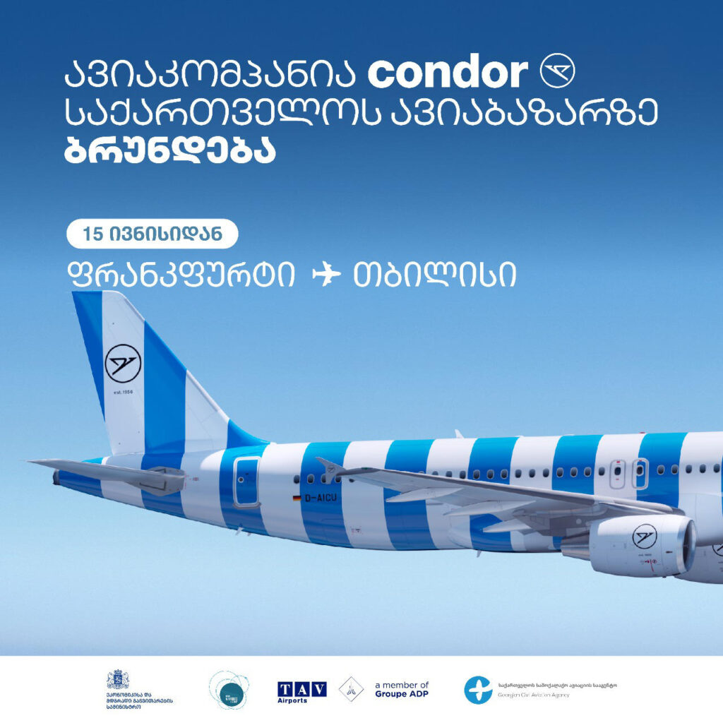 მათი ცნობთ, ავიაკომპანია საქართველოს ავიაბაზარზე 2022 – 2023 წლებში ოპერირებდა და ფრენებს ფრანკფურტი – თბილისის მიმართულებით კვირაში ორჯერ ასრულებდა და ორწლიანი ინტერვალის შემდეგ Condor Airlines-ის საქართველოში დაბრუნება ტრანსატლანტიკური ტრანზიტული ფრენების მიმართულებით ძალიან მნიშვნელოვანია.