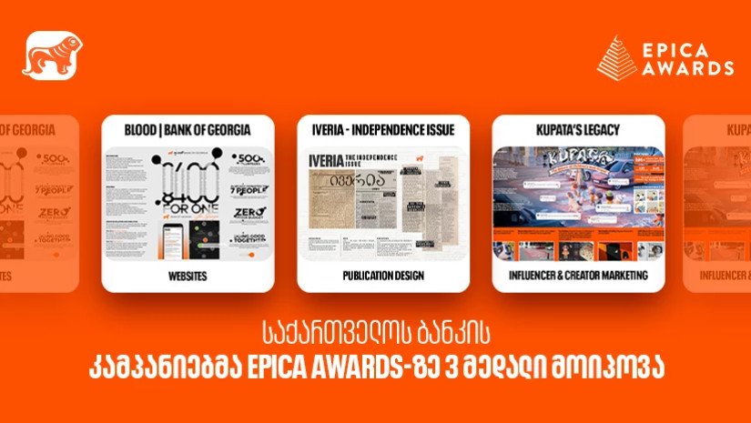 საქართველოს ბანკის კრეატიულმა კამპანიებმა საერთაშორისო კრეატიული ფესტივალის Epica Awards-ის სამ კატეგორიაში გაიმარჯვა და 1 ვერცხლის, 2 ბრინჯაოს მედალი მოიპოვა.