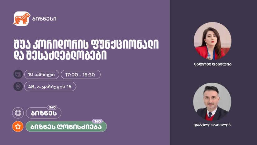 საქართველოს ბანკი განაგრძობს მცირე და საშუალო ბიზნესისთვის საგანმანათლებლო შესაძლებლობების განვითარებას. ამ მიზნით, პლატფორმა ბიზნეს 360-ის ფარგლებში, გაიმართება ვორკშოპი — შუა კორიდორის ფუნქციონალი და შესაძლებლობები.