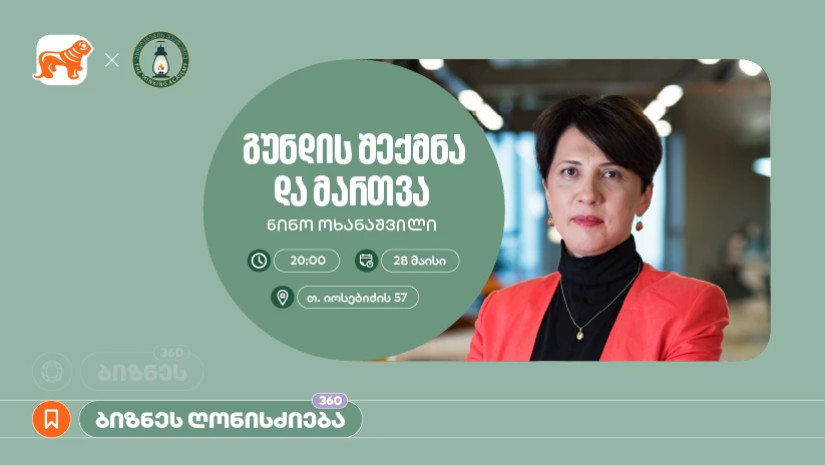 საქართველოს ბანკი განაგრძობს მცირე და საშუალო ბიზნესის გაძლიერებას და მხარდაჭერას. ამ მიზნით, ბანკი, აზროვნების აკადემიასთან პარტნიორობით, ბიზნეს სესიების ციკლს აგრძელებს. 28 მაისს, 20:00 საათზე, საქართველოს ბანკის მხარდაჭერით, აზროვნების აკადემია უმასპინძლებს მორიგ ღონისძიებას თემაზე — „გუნდის შექმნა და მართვა“, რომელსაც ნინო ოხანაშვილი გაუძღვება.