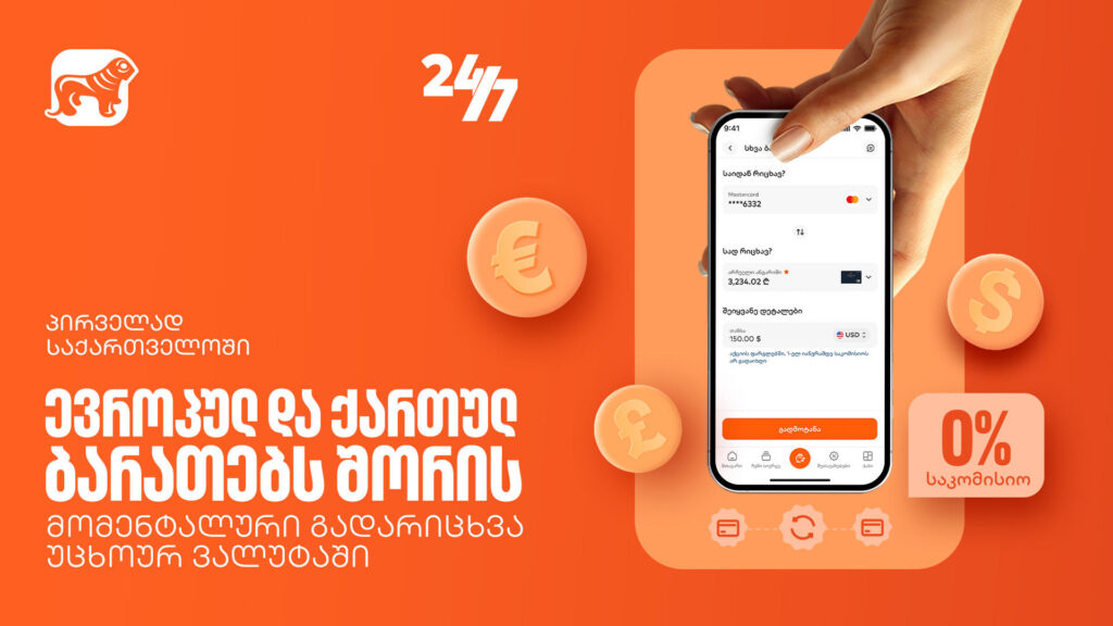 განახლებული ფუნქციონალით უკვე შესაძლებელია ევროპულ და ქართულ ბარათებს შორის თანხის მომენტალურად გადარიცხვა უცხოურ ვალუტაში, ამასთან: