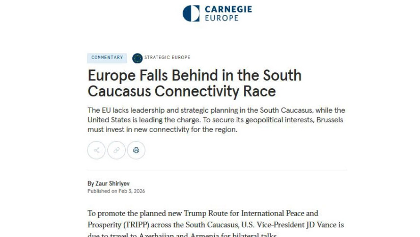 ევროპა სამხრეთ კავკასიის კავშირის რბოლაში ჩამორჩება, – ამ სათაურით Carnegie Europe ვრცელ სტატიას აქვეყნებს, სადაც საქართველოზეც არის საუბარი.