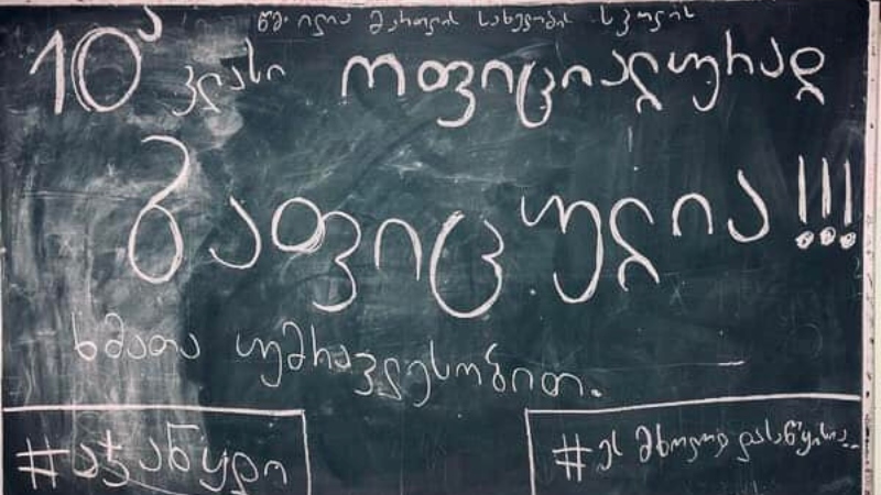 საქართველოს მასშტაბით სხვადასხვა საჯარო სკოლის მოსწავლეები პროტესტის ნიშნად იფიცებიან და გაკვეთილებზე არ შედიან.