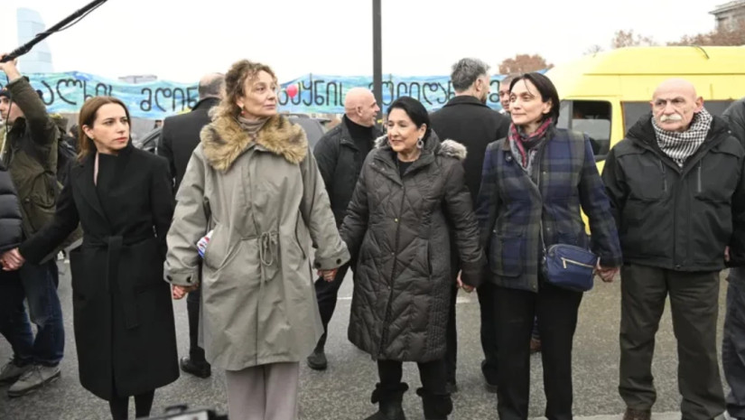 საქართველოს პრეზიდენტი, სალომე ზურაბიშვილი ზაარბრიუკენის მოედანზე საქართველოს ევროპული არჩევანის დასაცავად მოქალაქეების მიერ შეკრულ „ერთობის ჯაჭვს“ შეუერთდა.