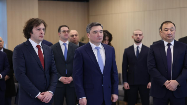 ორი ქვეყნის პრემიერ-მინისტრებს „ყაზახეთის რკინიგზის“ მმართველობის თავმჯდომარე ნურლან საურანბაევმა უმასპინძლა.