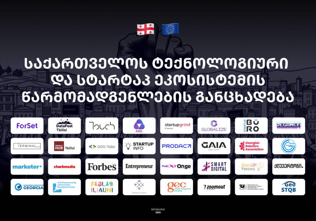 ჩვენ, საქართველოს ტექნოლოგიური და სტარტაპ ეკოსისტემის წარმომადგენლები, ვემიჯნებით და კატეგორიულად ვგმობთ „ქართული ოცნების” მიერ გაკეთებულ ბოლოდროინდელ განცხადებებს, დაფიქსირებულ პოზიციებს, და ფიზიკურ ანგარიშსწორებას მშვიდობიანი მომიტინგეების მიმართ. ეს და “ქართული ოცნების” მიერ ბოლო პერიოდში მიღებული სხვა გადაწყვეტილებები პირდაპირ ეწინააღმდეგება ჩვენი ქვეყნის ინტერესებს, მოქალაქეების ნებასა და კონსტიტუციას.