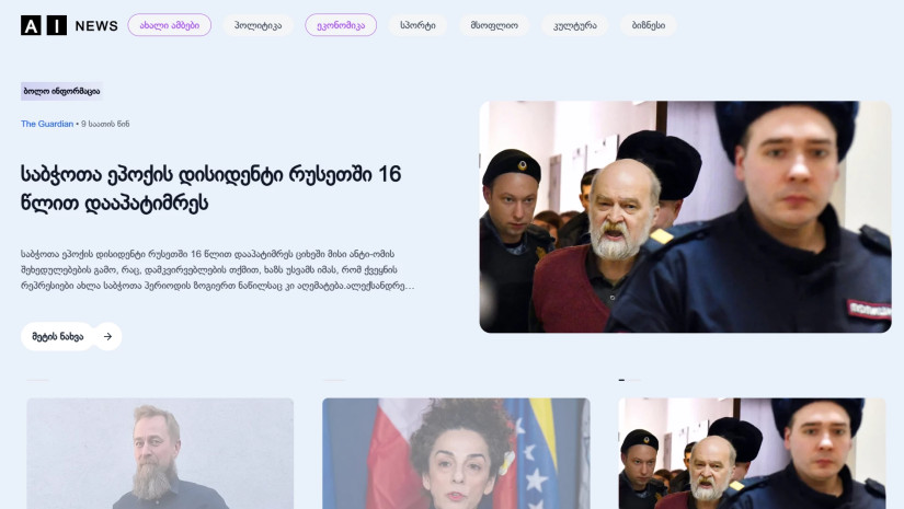 ხელოვნური ინტელექტის მიერ გენერირებული, გადამოწმებული და სანდო წყაროებზე დაყრდნობით მომზადებული ახალი ამბების ნახვა, ქართულ ენაზე უკვე შესაძლებელია, – AINews.ge “ჟურნალისტიკის რესურსცენტრის” პროექტია, რომელიც ქართველ დეველოპერებთან კოლაბორაციით შეიქმნა.