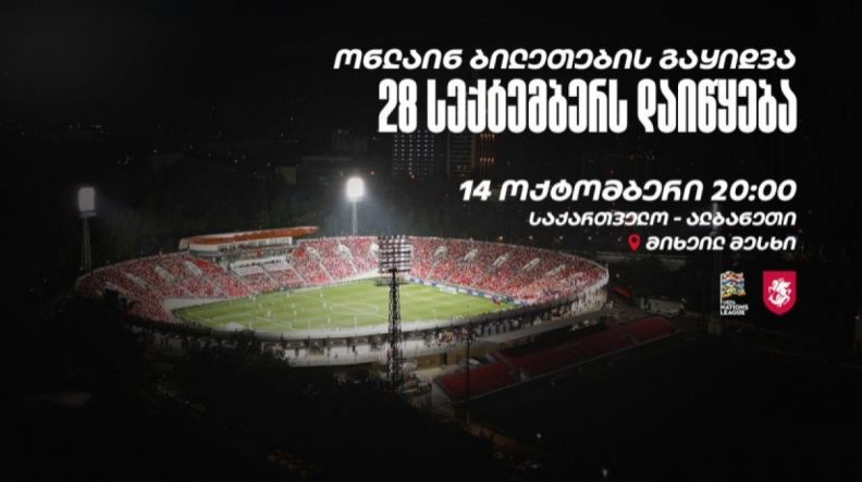 უეფას ერთა ლიგის 2024-25 წლის სეზონის მეოთხე შეხვედრას საქართველოს ნაკრები ალბანეთის წინააღმდეგ გამართავს. მატჩი 14 ოქტომბერს, 20:00 საათზე, მიხეილ მესხის სახელობის სტადიონზე გაიმართება. ერთა ლიგის ბ1 ჯგუფის მეოთხე მატჩზე დასასწრები ბილეთები მხოლოდ ონლაინ რეჟიმში გაიყიდება და მის რეალიზაციას TKT.GE უზრუნველყოფს.
