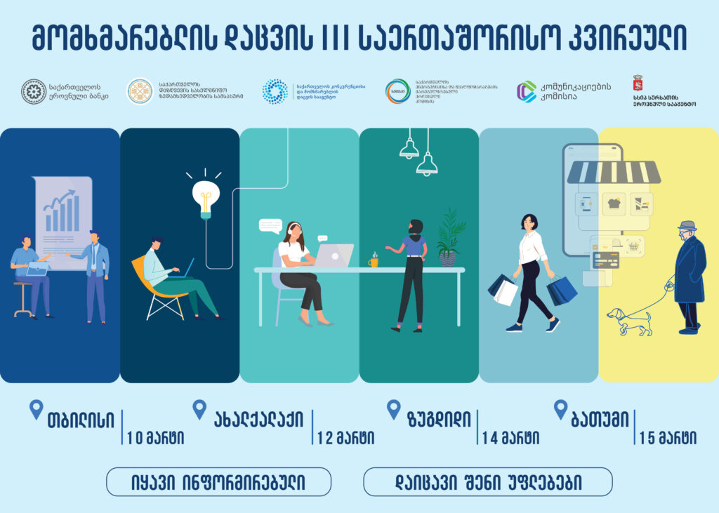 კონკურენციისა და მომხმარებლის დაცვის სააგენტოს ინფორმაციით, საქართველოში, კონკურენციისა და მომხმარებლის დაცვის სააგენტოს, სემეკის, დაზღვევის სახელმწიფო ზედამხედველობის სამსახურის, ეროვნული ბანკის, კომუნიკაციების კომისიის და სურსათის ეროვნული სააგენტოს ორგანიზებით, 2025 წლის 10-15 მარტს, მომხმარებელთა დაცვის III საერთაშორისო კვირეული იმართება.