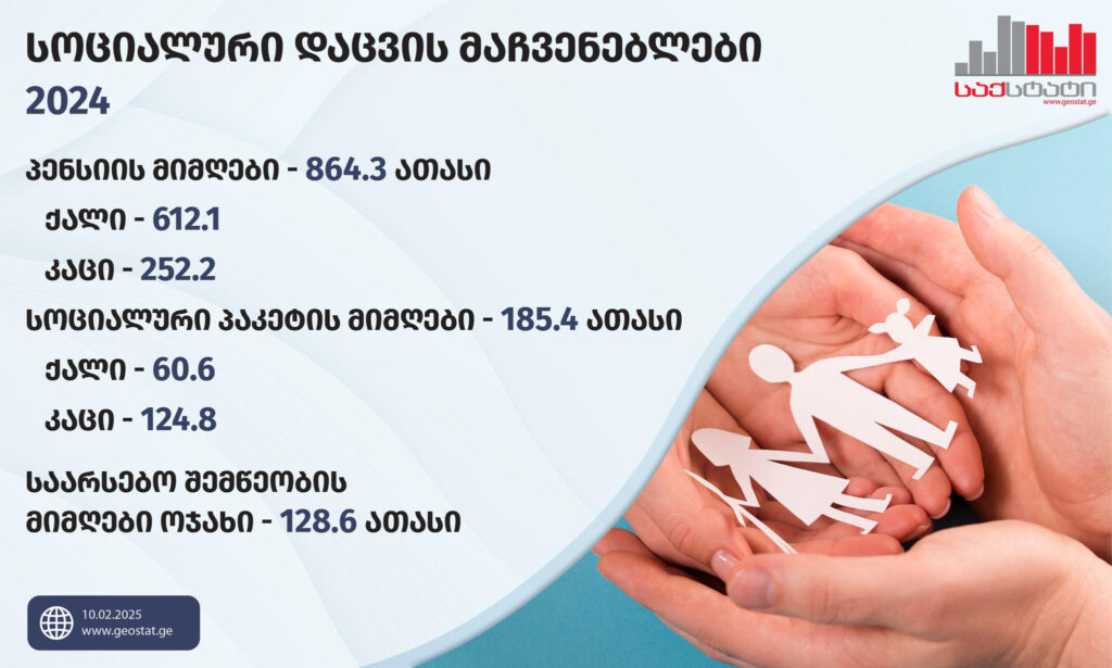 2024 წელს, მიზნობრივი სოციალური დახმარების პროგრამის მონაცემთა ბაზაში რეგისტრირებული ოჯახების რაოდენობამ 390.8 ათასი შეადგინა, ხოლო საარსებო შემწეობის მიმღები ოჯახების რაოდენობამ – 128.6 ათასი. რეგიონების მიხედვით ყველაზე მეტი რეგისტრირებული ოჯახი თბილისშია – 77.1 ათასი, საიდანაც დახმარების მიმღებია 33.2 ათასი”,- ნათქვამია ინფორმაციაში.