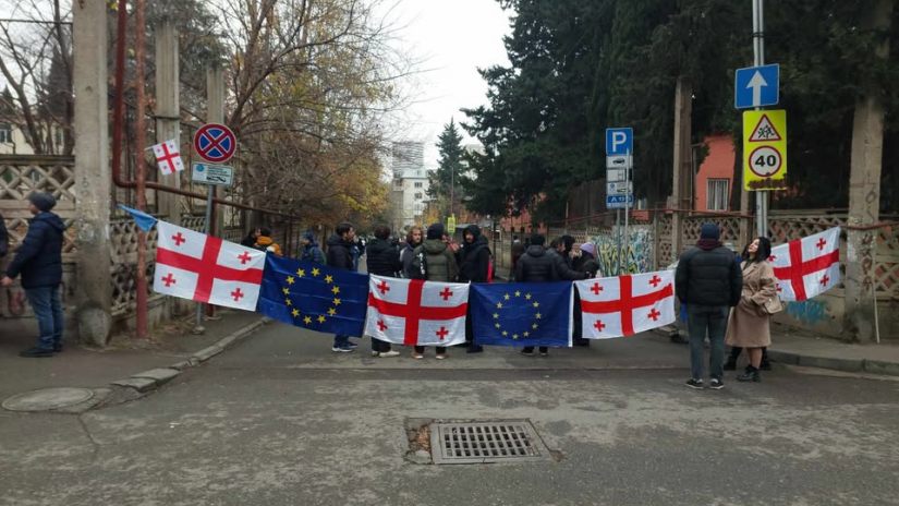 საქართველოსა და ევროკავშირის დროშებით ხელში, მოსწავლეები ქვეყანაში მიმდინარე მოვლენებს ეხმაურებიან, გმობენ ძალადობასა და ქვეყნის ევროპული კურსის ცვლილებას.
