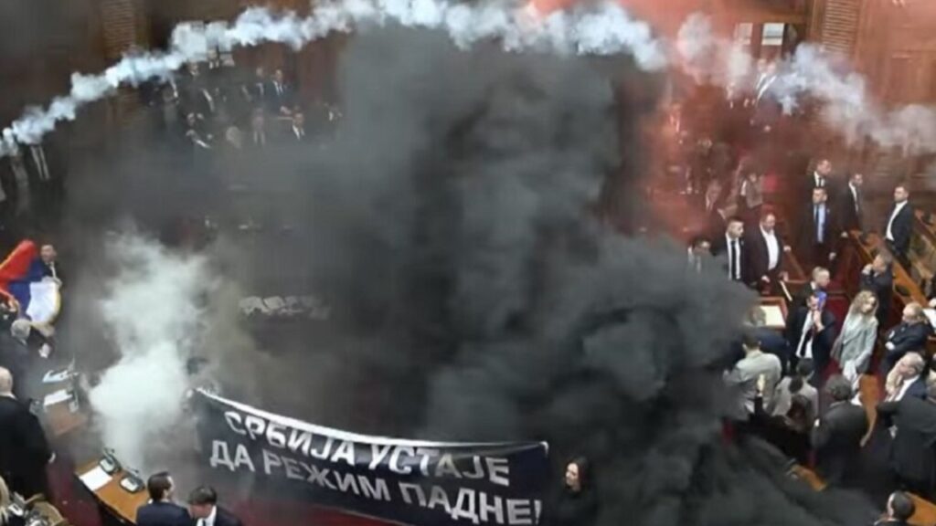 სერბეთის პარლამენტში ოპოზიციამ კვამლის ხელყუმბარები და ცრემლსადენი გაზი ისროლა