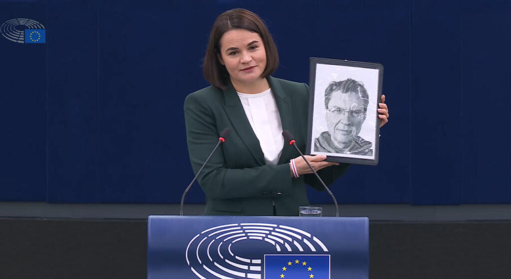 ანდჟეი პოჩობუტისა და მზია ამაღლობელისთვის სახაროვის პრემიის მინიჭება ძლიერ „მესიჯს“ უგზავნის ყველა პოლიტიკურ პატიმარს: თქვენ მარტო არ ხართ და ჟურნალისტიკა დანაშაული არ არის, – ამის შესახებ ბელარუსელმა ოპოზიციონერმა პოლიტიკოსმა, სვეტლანა ტიხანოვსკაიამ ევროპარლამენტში სიტყვით გამოსვლისას განაცხადა.