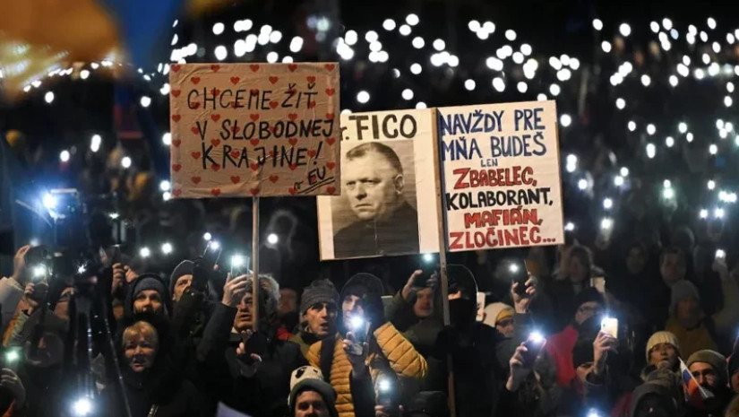 სლოვაკეთის დედაქალაქ ბრატისლავაში რობერტ ფიცოს საწინააღმდეგო აქციაზე ათასობით მომიტინგე შეიკრიბა.
