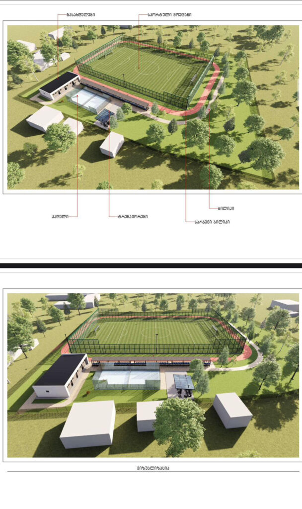 „ხელოვნურსაფარიან საფეხბურთო მოედანს ექნება მაყურებელთა ტრიბუნა, რომელიც 120 მაყურებელზეა გათვლილი. ადგილები გათვალისწინებული იქნება შშმ პირთათვისაც. აღნიშნულ ტერიტორიაზე ასევე აშენდება გასახდელი საშხაპეებით. შენობა აღიჭურვება შესაბამისი ინვენტარით. რაც შეეხება პადელის მოედანს, იგი 200 კვ.მ ფართობზე განთავსდება. ტერიტორიაზე გათვალისწინებულია სატრენაჟორო სივრცისა და სარბენი ბილიკის მოწყობაც, დანარჩენი სივრცე კი რეკრეაციას დაეთმობა“, – განაცხადა მერმა.