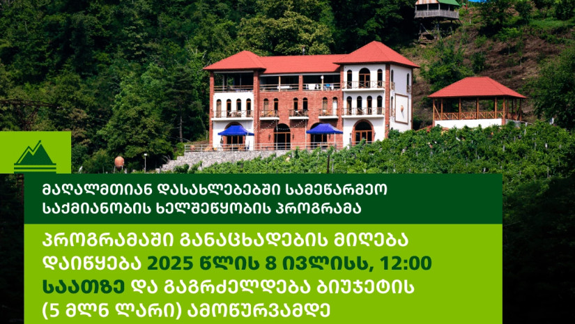 სოფლის განვითარების სააგენტო „მაღალმთიან დასახლებებში სამეწარმეო საქმიანობის ხელშეწყობის პროგრამაში“ მიმდინარე წელს მონაწილეობისთვის განაცხადების მიღებას იწყებს