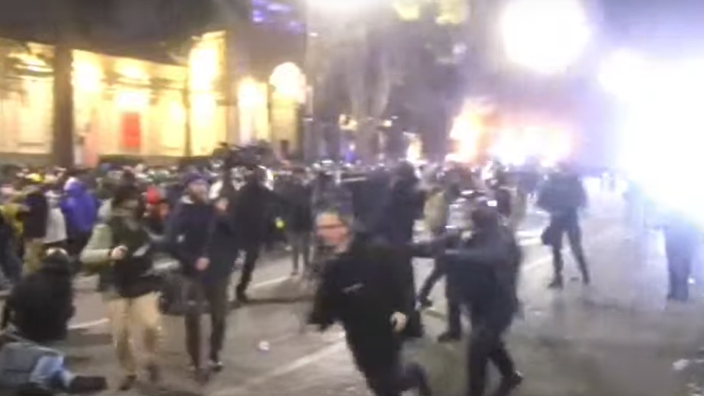 სპეცრაზმმა სპეცტექნიკის გამოყენებით დაიწყო აქციის დარბევა – ამჯერად, უკვე რუსთაველის გამზირის ტერიტორიაზეც.