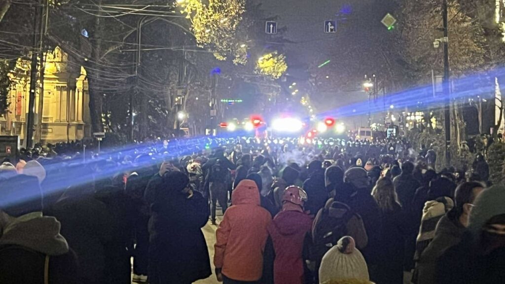 სპეცრაზმი აქციის მონაწილეებისგან ათავისუფლებს რუსთაველის გამზირს. დემონსტრანტებმა “ცისფერი გალერეისკენ” გადაინაცვლეს, თუმცა არ იშლებიან.