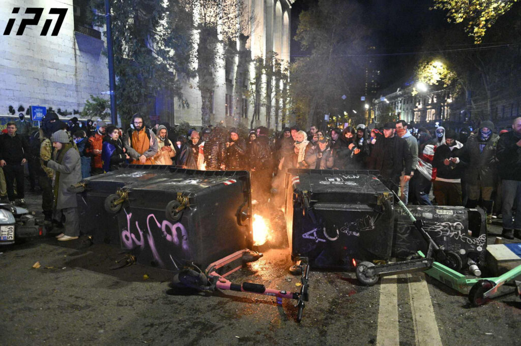 ამ წუთებში, აქციის მონაწილეებმა „ცისფერი გალერიის“ მიმდებარე ტერიტორიაზე ნაგვის ურნებისგან ბარიკადები აღმართეს. რამდენიმე წუთში კი დემონსტრანტებმა ურნების დაწვა დაიწყეს.