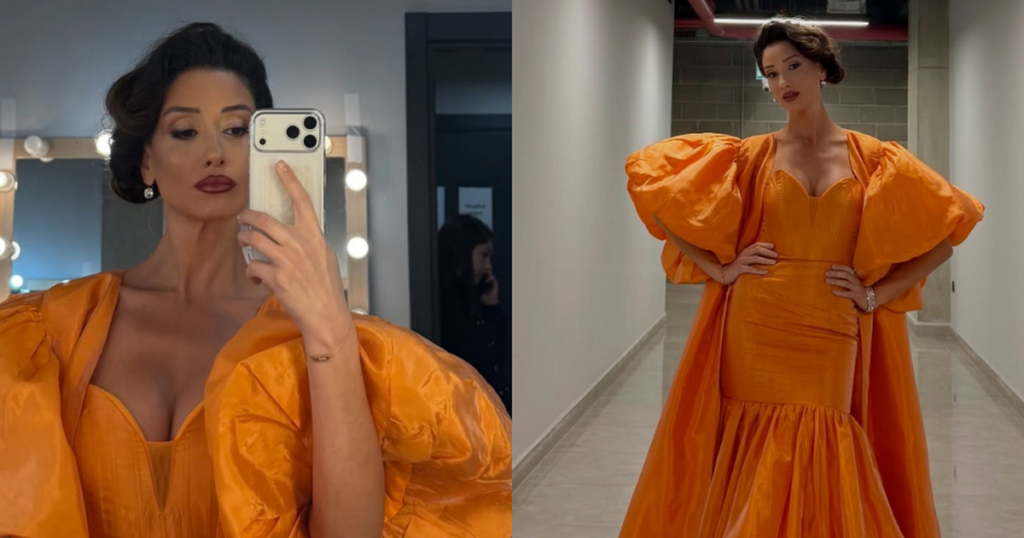 კადრებში ნინი შესანიშნავად გამოიყურება – მან გრანდიოზული ნარინჯისფერი კაბა მოირგო, რომელმაც მისი ელეგანტურობა და გამორჩეული სტილი კიდევ უფრო გამოკვეთა.