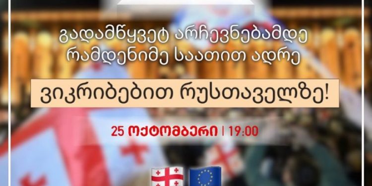 “დღეს, გადამწყვეტი არჩევნების წინა საღამოს, ვიკრიბებით რუსთაველზე და მსვლელობით კიდევ ერთხელ მოვუწოდებთ ჩვენს თანამოქალაქეებს, მოვიდნენ არჩევნებზე და გამოიყენონ საკუთარი გადამწყვეტი ხმის უფლება ქვეყნის დემოკრატიული, ევროპული მომავლის გადასარჩენად!” – ნათქვამია აქციის ორგანიზატორთა განცხადებაში.