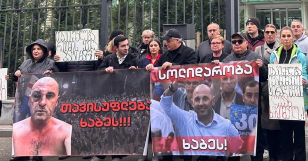 სახელმწიფო უსაფრთხოების სამსახურის შენობასთან ოპოზიციონერი ლიდერის, ლევან ხაბეიშვილის ოჯახის წევრები, მეგობრები, თანაპარტიელები და მხარდამჭერები შეიკრიბნენ. მათი თქმით, პოლიტიკოსი პოლიტპატიმარია.