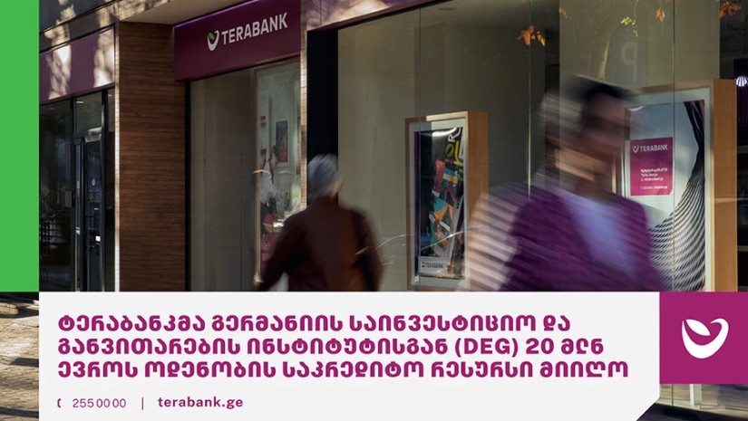 ტერაბანკმა გერმანიის საინვესტიციო და განვითარების ინსტიტუტისგან (DEG) 20 მლნ ევროს ოდენობის საკრედიტო რესურსი მიიღო