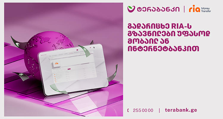 ტერაბანკის მობაილ და ინტერნეტბანკით მომხმარებლებს Ria-ს ფულადი გზავნილების გაგზავნა საკომისიოს გარეშე შეუძლიათ.