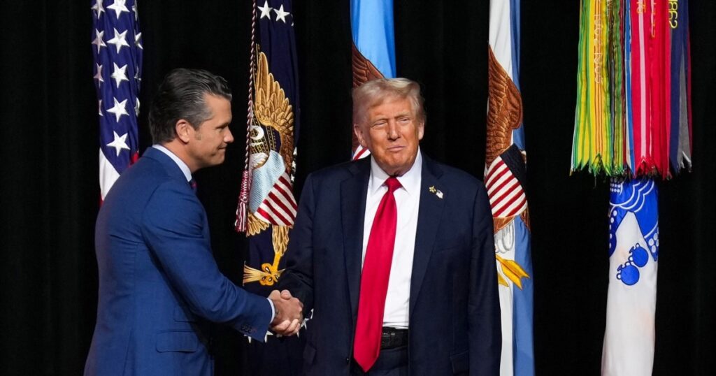 ასე წარადგინა აშშ-ის ომის მდივანმა პიტ ჰეგსეთმა აშშ-ის პრეზიდენტი დონალდ ტრამპი 30 სექტემბერს ქუანტიკოს ბაზაზე (ვირჯინია) აშშ-ის სამხედრო ლიდერებთან შეხვედრაზე. პრეზიდენტ ტრამპის გამოსვლა საათზე მეტხანს გაგრძელდა.