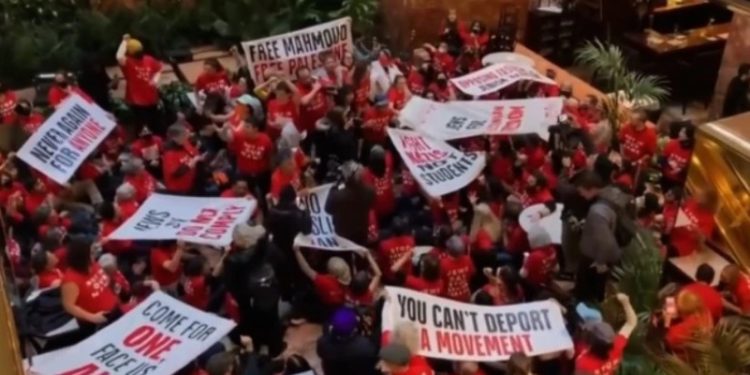 “ტრამპ თაუერში” გამართულ საპროტესტო აქციაზე 98 პირი დააკავეს. შენობის პირველ სართულზე ასობით სტუდენტი პროპალესტინელი აქტივისტის დაკავების გასაპროტესტებლად შეიკრიბა.